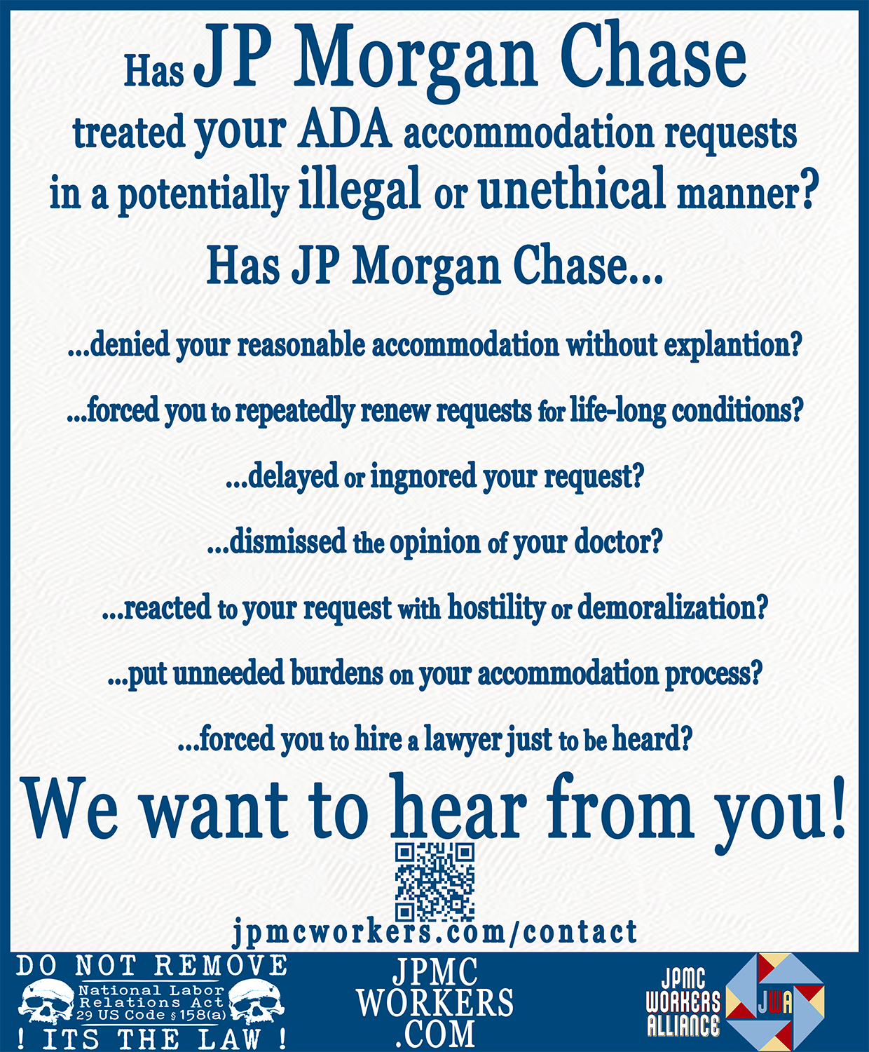 Unreasonable Accommodations - Images & Materials - JPMC Workers Alliance